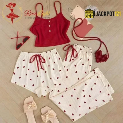 3PC Cute Pajama Set for Women – Tank Top, Wide Leg Pants & Shorts Sleepwear