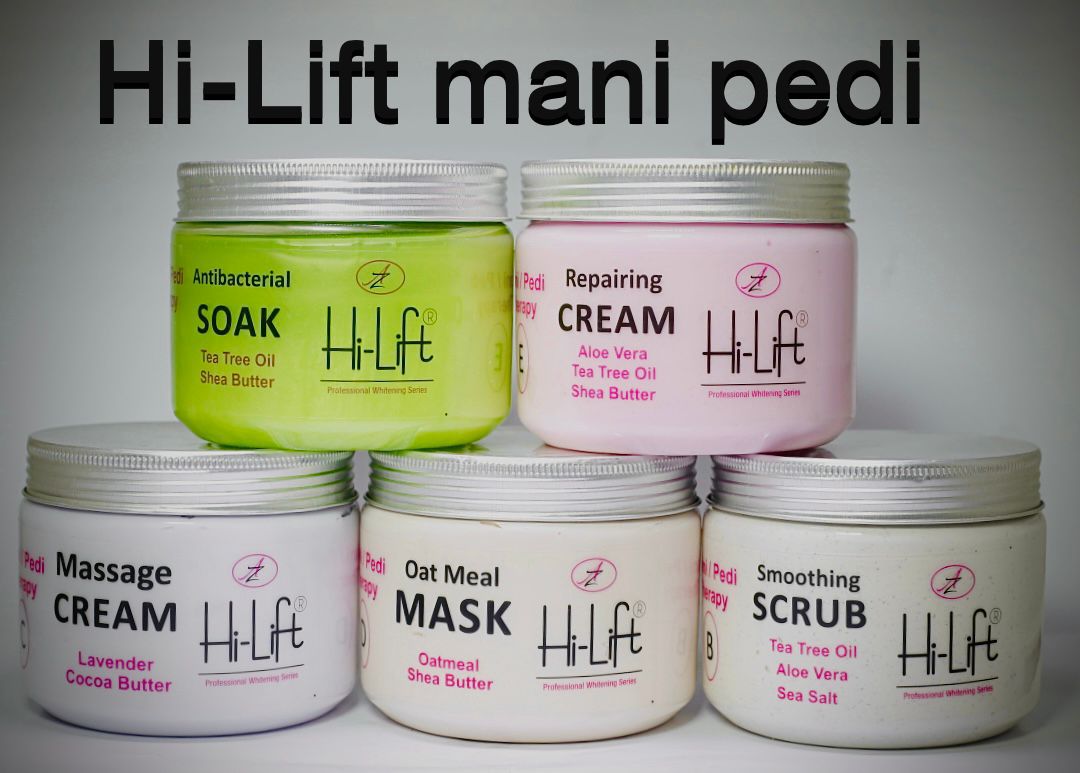 The Hi-Lift Mani Pedi Series is a complete professional hand and foot care system designed to cleanse, exfoliate, soften, repair, and hydrate the skin. With powerful ingredients like Tea Tree Oil, Shea Butter, Aloe Vera, Lavender, Cocoa Butter, Sea Salt, and Oatmeal, each product targets specific skin needs—offering salon-quality results at home or in professional spas. This range leaves hands and feet clean, refreshed, nourished, and visibly smoother.