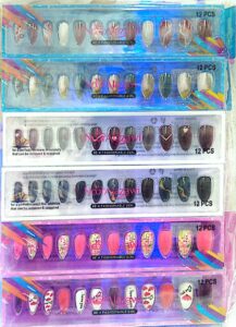 - Clear window packaging: shows nail designs and includes hand model photos for styling reference