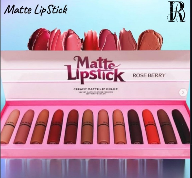 Rose Berry 12 Colors Matte Lipstick Set offers a versatile shade collection.