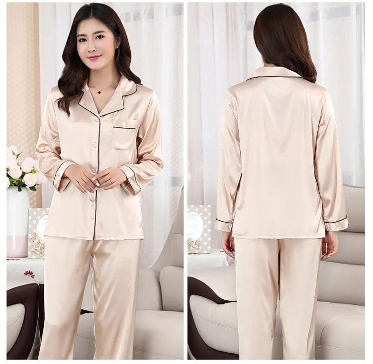 Women’s Silk Satin Pajama Set – Turn-Down Collar Full-Length Summer Sleepwear